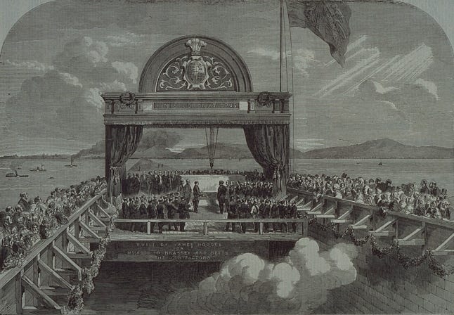 One of the biggest challenges in the building of this link to a winter port was the need to cross the St. Lawrence River. The Victoria Bridge, a tubular structure, was completed in 1859 and the last stone was ceremonially placed by the Prince of Wales in 1860. The first trains had already travelled across the bridge from December 1859.