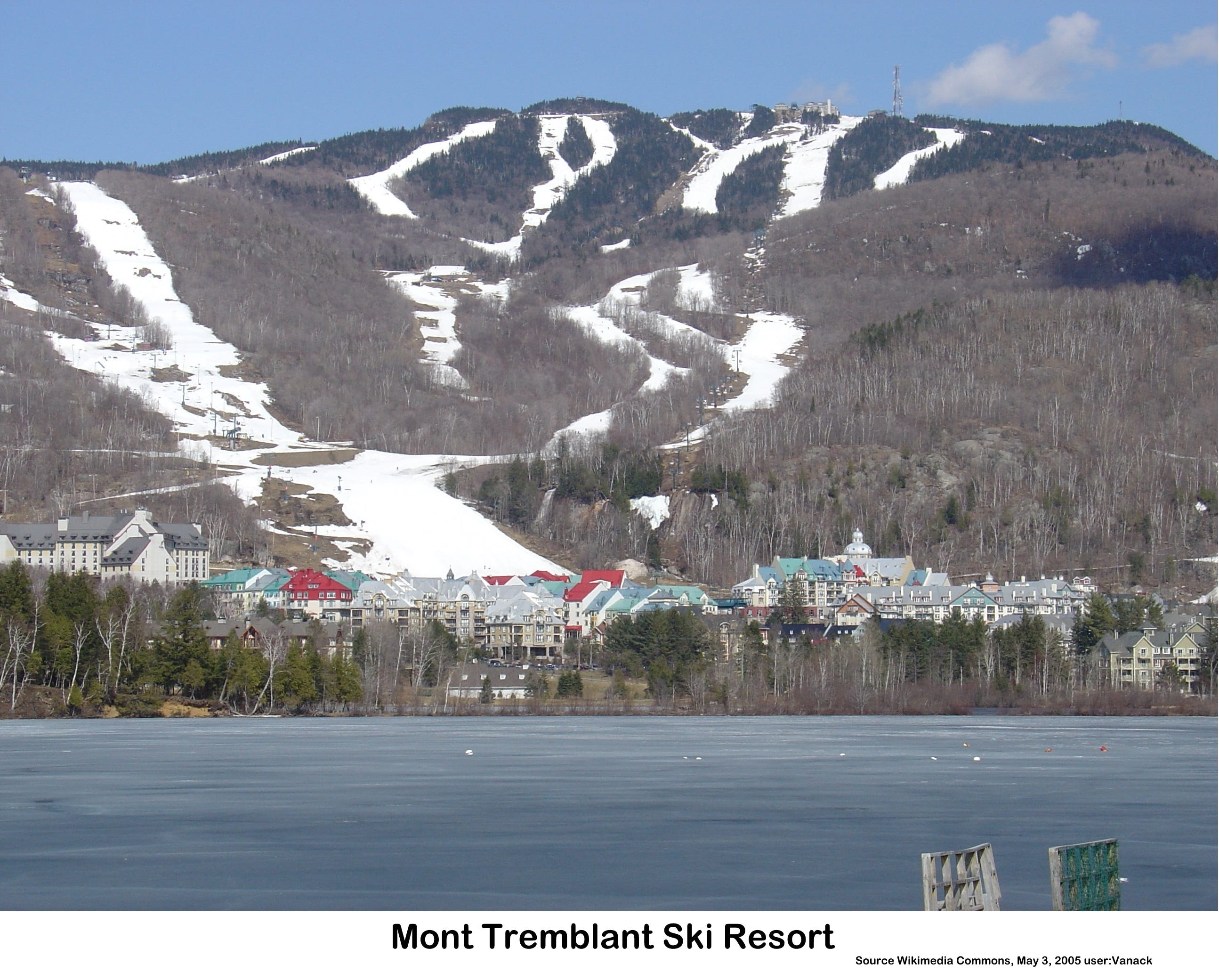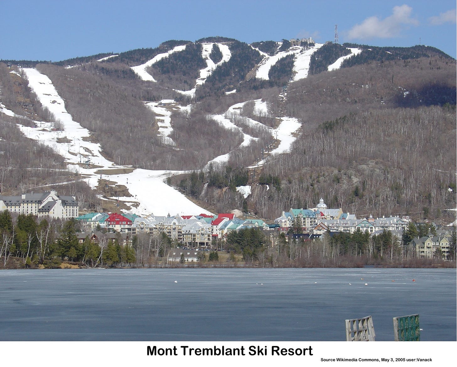 The mountain that we call Mont Tremblant stands almost a kilometre (968 metres or 3,176 feet) above sea level. It is interesting to see the readings in both forms of measurement because, while today it is marked in metres, the railroad stations built through the Laurentians posted their elevations in feet. The station at Ste. Adele informed passengers that they were 600 feet above sea level, then they climbed, slowly, to Ste. Agathe at 1,200 feet, then to St. Faustin (Mont Blanc) at 1,500 feet and suddenly dropped into the Diable and Rouge River basin to St. Jovite back at 600 feet. Unimaginably, just up the road from there, a single massive mountain rose 2,576 feet above the railroad line.